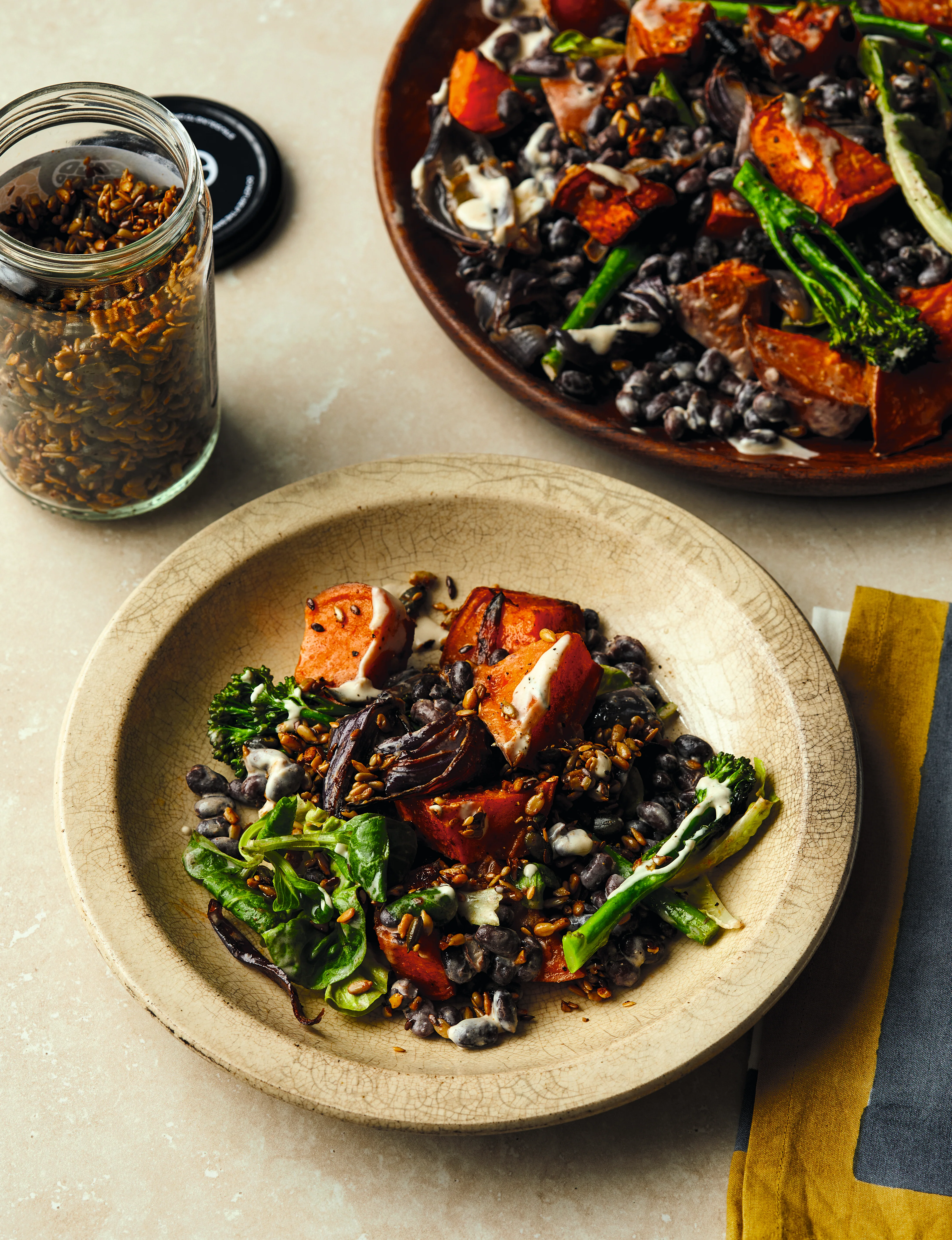 Think brown butter caper butter beans + courgettes. Think creamy chicken, leek + butter bean pie. Think punchy peanut black bean curry.
